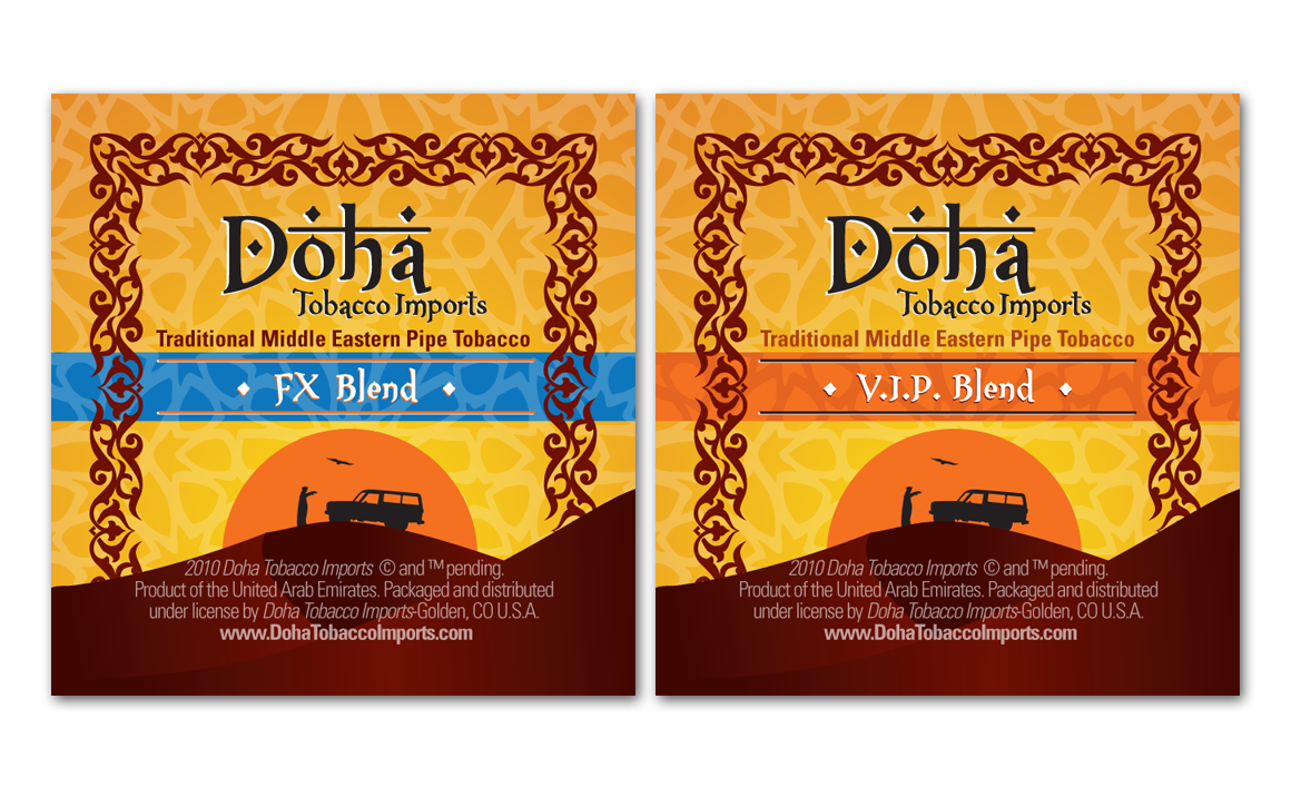 JBB worked with Doha Tobacco Imports to create their brand from its infancy. Logo design, and product labels centered on the well-articulated theme presented to us by the company founder.