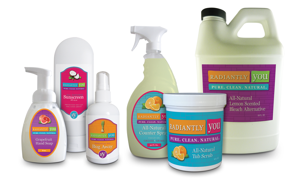 Mel from Radiantly You, a direct sales organization that manufactures and sells its line of chemical-free home and beauty products, was growing fast. New products were being developed fast and furious, and they needed packaging, catalog, and branding design…stat. JBB took to the task of redesigning their complete line, from the ground up.
